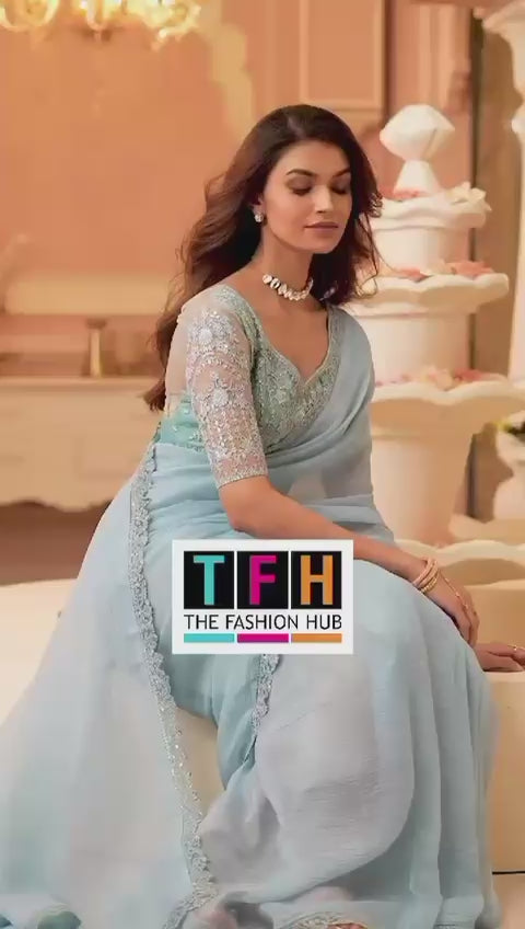 Overall Impression : This saree is ideal for daytime events, pre-wedding ceremonies, or summer festivities. Its soft hue and minimalistic elegance make it especially suitable for women who prefer a graceful, poised appearance over loud glamour.